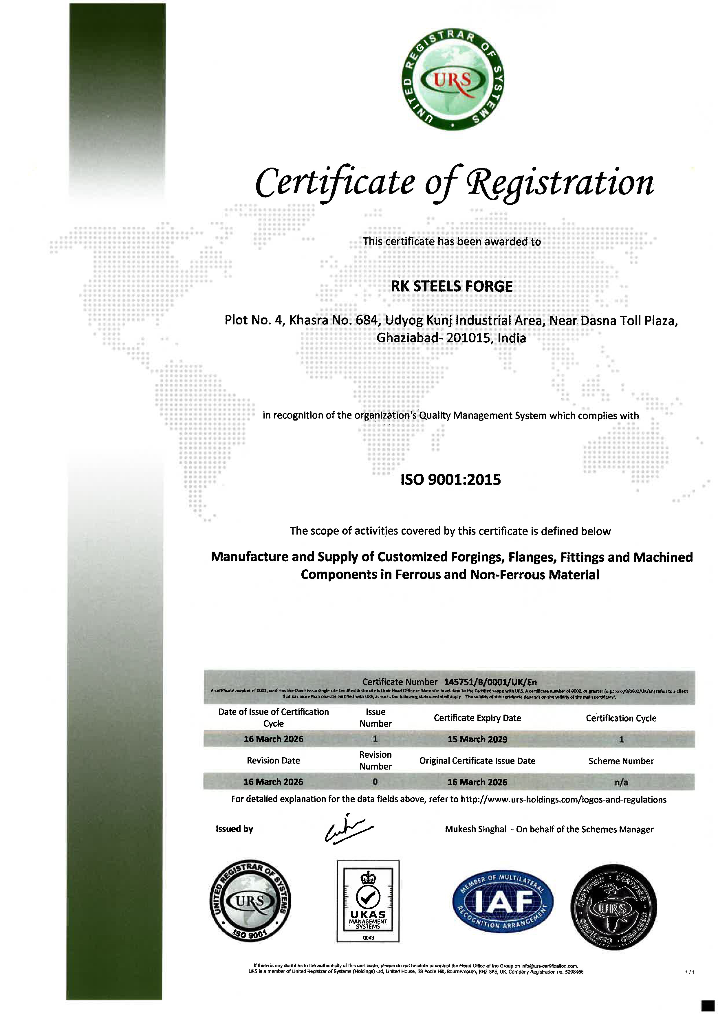 We understand the importance of quality forged component. We adhere to challenge ourselves with latest international standards to maintain the same. The quality of our products and manufacturing processes is assured by certificates held by the company. We have separate QA department in our company to assure quality of our products by monitoring every process. Quality of product is well checked by NDT equipment of latest technology. The quality managing system is certified in compliance to ISO 9001 : 2015, ISO 14001 : 2015, ISO 45001 : 2018.